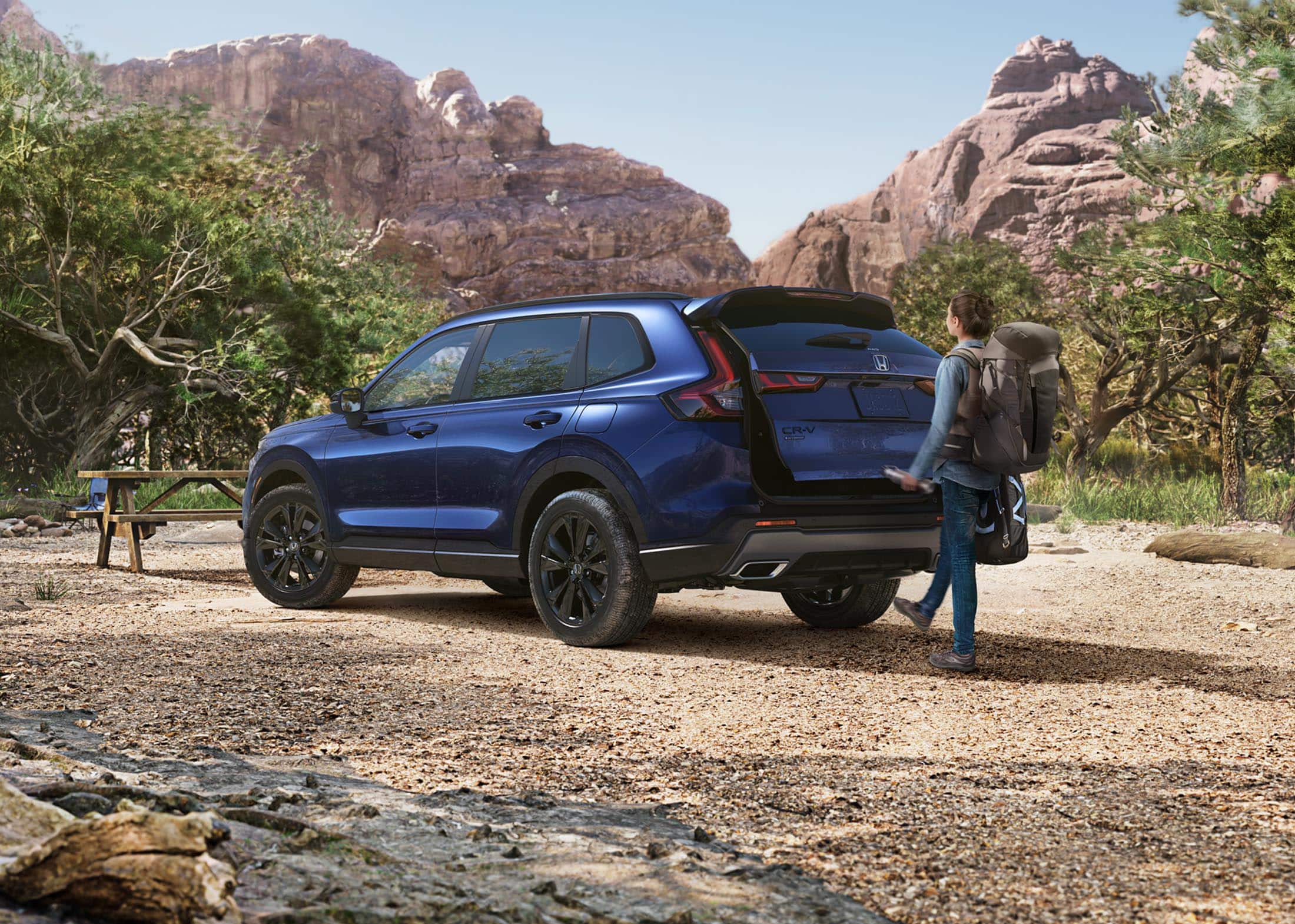 TrailSport Hybrid shown in Canyon River Blue Metallic with Honda Genuine Accessories.